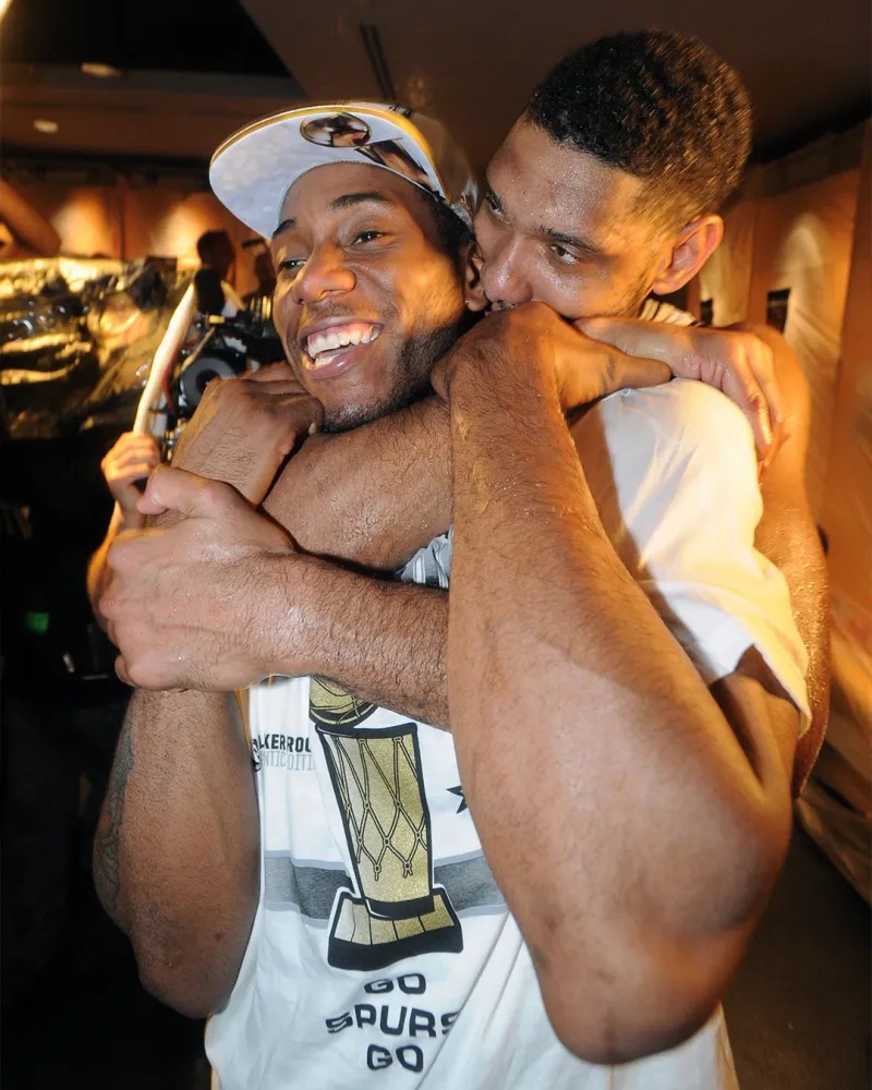 照片中,大卫-罗宾逊、邓肯、托尼-帕克、吉诺比利、伦纳德以及波波维奇均有亮相。
